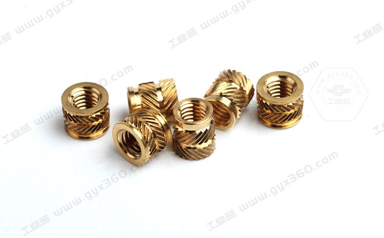 此外,在注塑行業(yè),還會用到各式銅嵌件螺母,螺母外部滾花和徑向槽與塑料緊密連接內(nèi)部螺紋提供高于塑料的強度與螺栓連接,廣泛用于各式塑料手柄的制造。