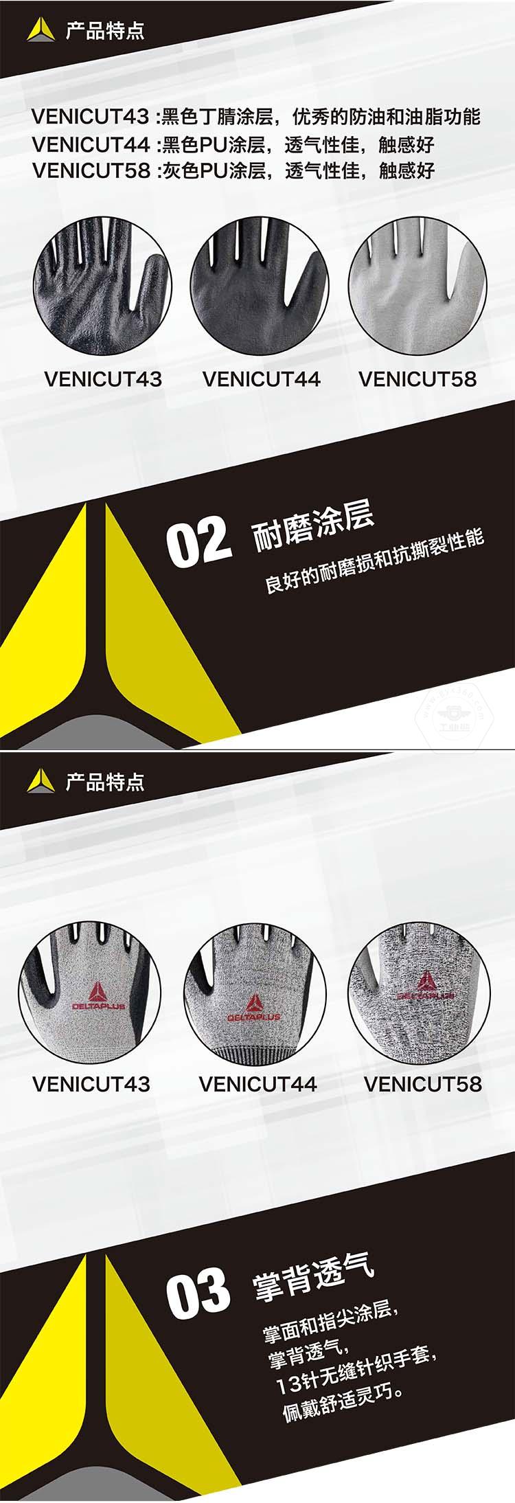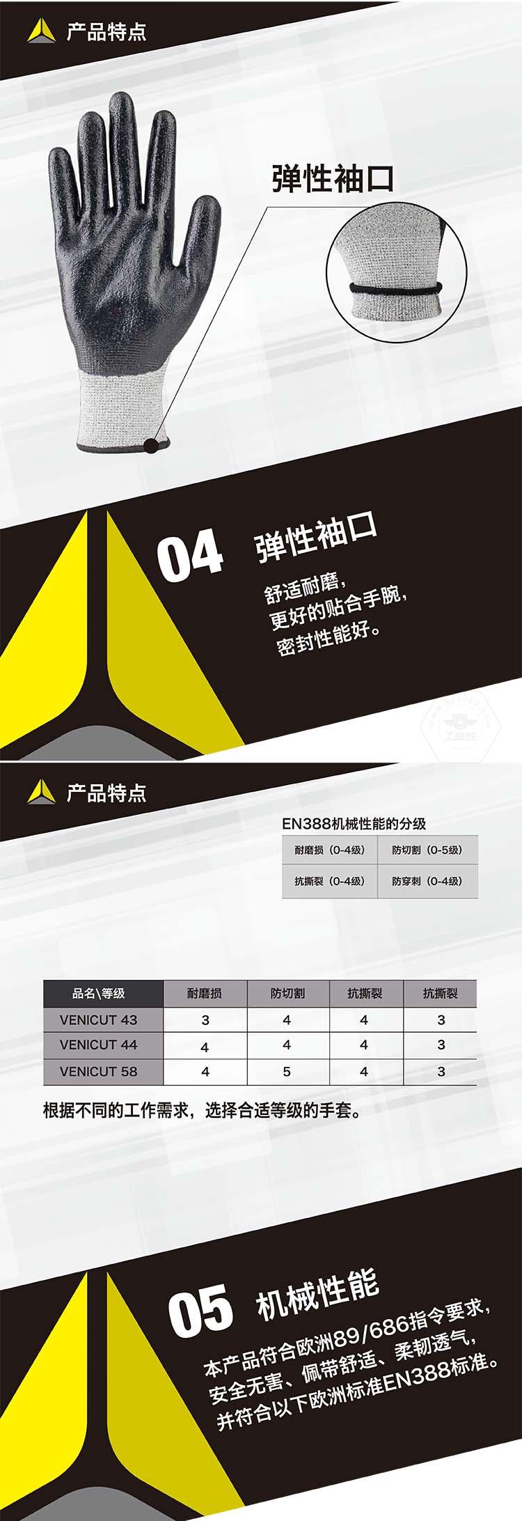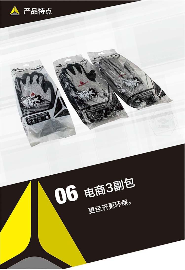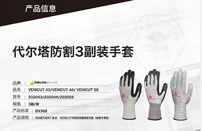 商品名稱:代爾塔 3副裝防割勞保工作手套 VENICUT43(3級(jí)耐磨4級(jí)防割)
