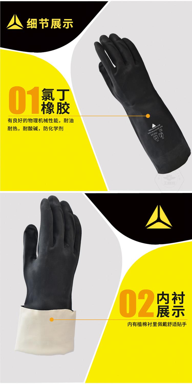 商品名稱:代爾塔 耐油耐熱防酸堿 工作勞保手套 防化防護手套 勞保用品 201510 黑色 一副(2只)