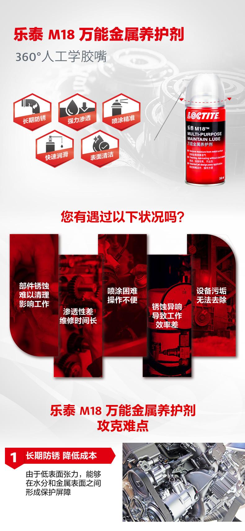 樂泰M18萬能金屬養(yǎng)護(hù)劑是一款集防銹、滲透、潤(rùn)滑、清潔于一體的產(chǎn)品。樂泰M18萬能金屬養(yǎng)護(hù)劑由于低表面張力,能夠在水分和金屬表面之間形成保護(hù)屏障,實(shí)現(xiàn)長(zhǎng)期防銹。樂泰M18萬能金屬養(yǎng)護(hù)劑可快速滲透生銹和腐蝕組件,節(jié)約工時(shí)。樂泰M18萬能金屬養(yǎng)護(hù)劑采用360°人工學(xué)膠嘴,噴涂更精準(zhǔn),操作更簡(jiǎn)便,還可快速潤(rùn)滑并降低噪音,同時(shí)去除表面較輕微污垢,提升效率。